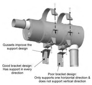 - The DPF mounting brackets should only be attached to either the machine structure (for example, frame) or the engine, not both. If necessary, additional support structure may be fabricated in order to create a rigid structure.
