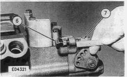 1. Remove the fuel shutoff solenoid (1), top cover (2) of the fuel injection pump housing and the cover over the torque control group.