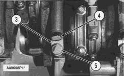 b. Tighten bolt (5) to a torque of 40 ± 4 N·m (30 ± 3 lb ft).