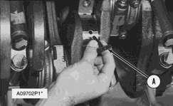 4. Turn the crankshaft until Tool (A) can be installed in the oil hole in the crankshaft journal. Install Tool (A). Turn the crankshaft in the direction which will push the upper main bearing out, tab end first.