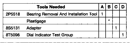 … If the main bearing clearances are checked with the engine upright or on its side, the crankshaft must be supported. Use a jack under an adjacent crankshaft counterweight, and hold the crankshaft against the crown of the bearing. If the crankshaft is not supported, the weight of the crankshaft will cause incorrect readings.