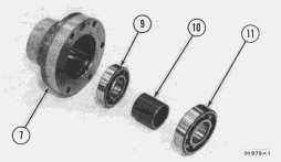 3. Remove bearing (11), spacer (10) and bearing (9) from hub (7). Remove seal from hub.