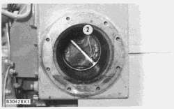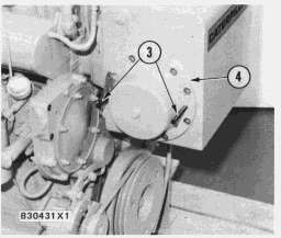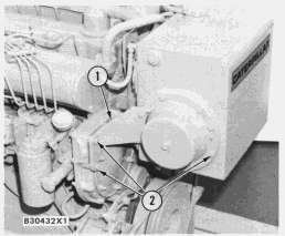 3. Remove bolts (2) and support (1) from timing gear cover and bonnet.