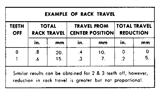 Total rack travel, approximately .800 in. (20.32 mm), will be reduced if the pump is installed one or more teeth off in either the “fuel on” or “fuel off” side of its gear segment. The only way to check for correct installation of pumps with engine stopped is to measure full rack travel with the entire governor removed, including piston and valve mechanism.