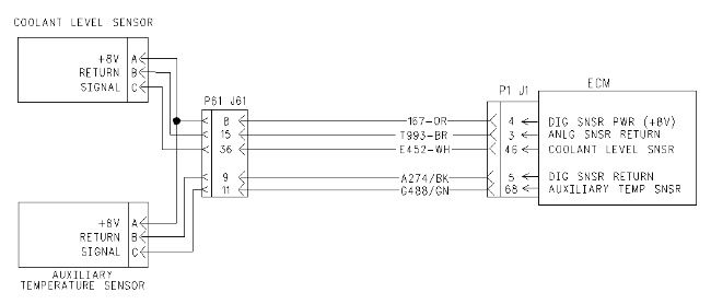 The digital sensor supply provides power to all digital sensors. The coolant level sensor and the auxiliary temperature sensor are digital sensors.