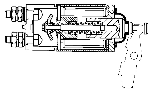 When two sets of solenoid windings are used, the windings are called the hold-in winding and the pull-in winding. Both sets of windings have the same number of turns around the cylinder, but the pull-in winding uses a wire with a larger diameter. The wire with a larger diameter produces a greater magnetic field (9) . When the start switch is closed, part of the current flows from the battery through the hold-in windings. The rest of the current flows through the pull-in windings to the motor terminal. The current then flows through the motor to ground. Solenoid (10) is fully activated when the connection across the battery and the motor terminal is complete. When solenoid (10) is fully activated, the current is shut off through the pull-in windings. At this point, only the smaller hold-in windings are in operation. The hold-in windings operate for the duration of time that is required in order to start the engine. Solenoid (10) will now draw less current from the battery, and the heat that is generated by solenoid (10) will be kept at an acceptable level.