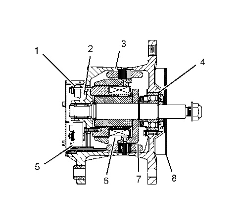 Typical alternator components (1) Regulator (2) Roller bearing (3) Stator winding (4) Ball bearing (5) Rectifier bridge (6) Field winding (7) Rotor assembly (8) Fan |