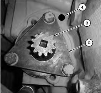 Locating Top Center (Right Side Of Engine) (4) Location for timing bolt (B) 5P-7305 Engine Turning Tool (C) 5P-7306 Shaft Housing |