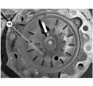 B. Inspect the swirl plate for fouled slots. Refer to Illustrations 6 and 7 to verify if the swirl plate is fouled.