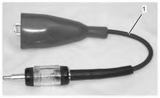 | 3. Check for Spark at the Coil Output, Using the Spark IndicatorA. Assemble the 373-4609 Spark Tester as shown in Illustration 1. Ensure that the alligator clip is secured to a good ground source.B. Install the spark indicator as shown in illustration 2. C. Use the “Aftertreatment #1 Ignition Transformer Primary Override” on Cat ET to turn ON the ARD ignition system. Check for spark in the spark indicator. |