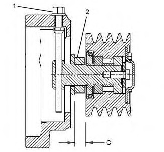 - Using tooling (A) wrench, loosen the jam nut (2) .Note: See Illustration 1, dimension (C) .