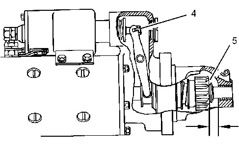 In order to adjust the pinion clearance, remove the plug and turn the shaft nut (4) .